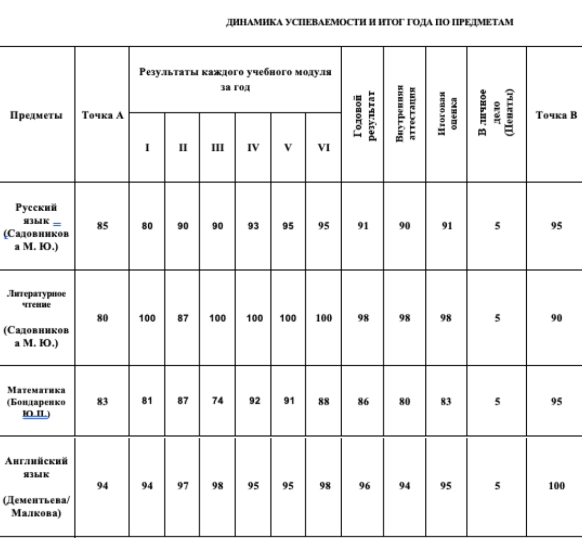 Результаты Миши на конец четвертого класса.